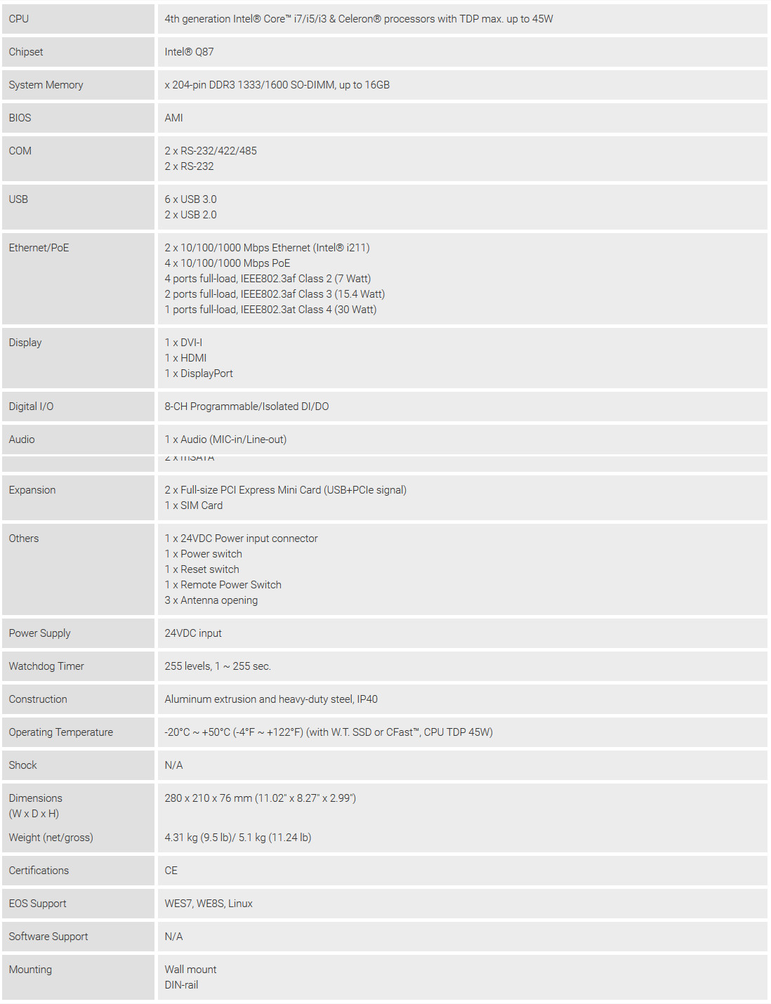 the powerful PoE embedded vision system supports LGA1150 socket 4th