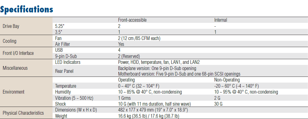 · 支持ATX 母板或 多达15槽的PICMG无源底板