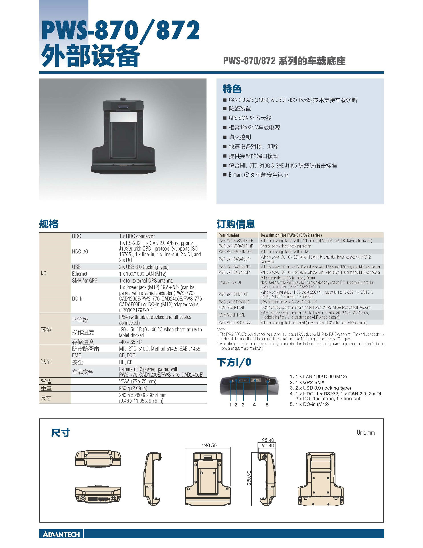 ● 坚固耐用,通过 MIL-STD-810G,IP65等级防水防尘及4ft跌落测试