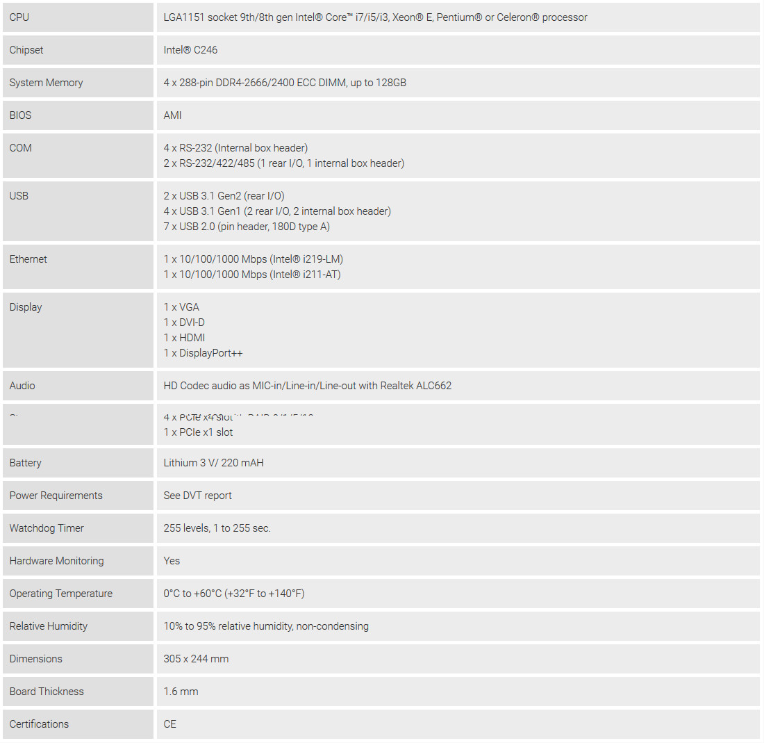 the Intel® C246 chipset. The industrial motherboard is designed with